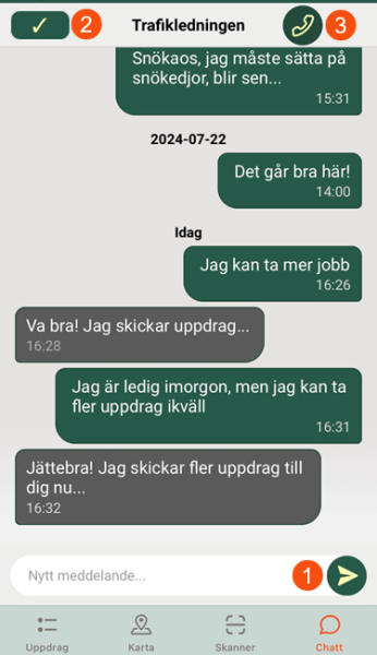 When there is a telephone number for dispatch, the handset button in Opter Driver is green. If no telephone number has been entered, the button is grey.