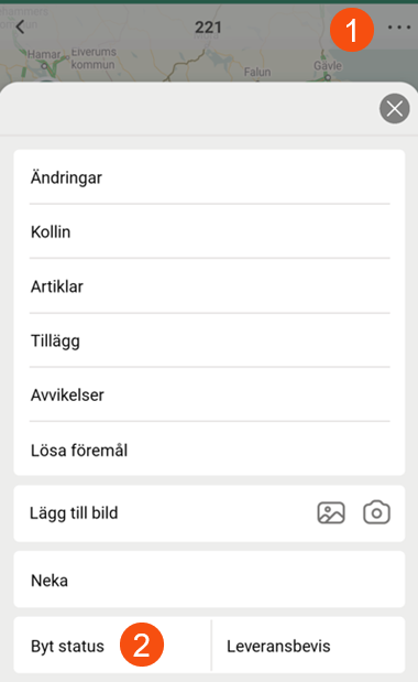 If you tap a shipment on the shipment page, the shipment’s detail view is displayed. To change the status of the shipment, tap the menu (