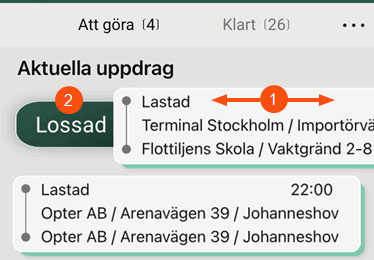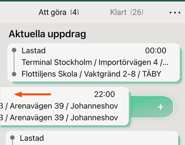 If your dispatcher has made a setting so that you cannot change the status to Korjatud and/or Kohale toimetatud in the shipment list, then when you drag the shipment sideways in the shipment list, the detail view of the shipment opens instead.
