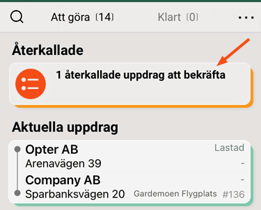 The shipments that are given away are given the Määratud status for the party to which they have been given, and are shown on the Todo tab in that driver’s app.