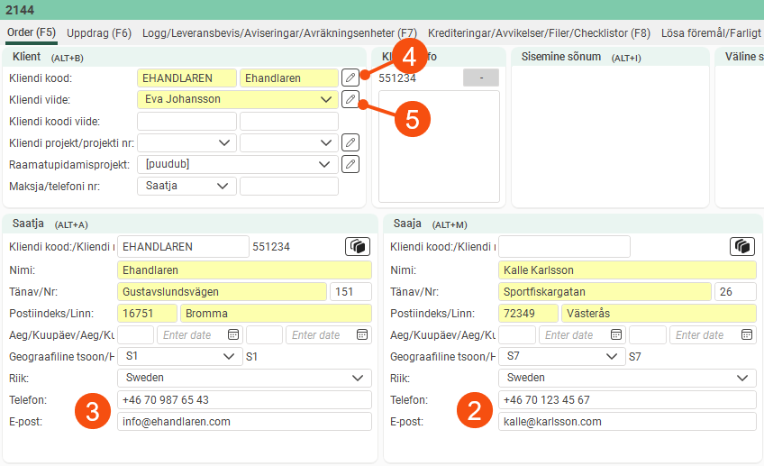 Click on Register > Kliendid and find the customer where the customer reference for which notifications are to be sent for its orders works.