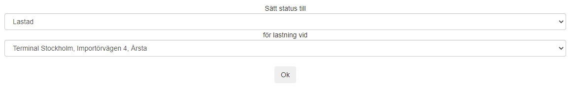 The email message contains links for changing the shipment’s status. The links lead to a web page where the subcontractor can choose the status (Korjatud or Kohale toimetatud) and address on the shipment to which it applies. The options are preset depending on which link in the notification the subcontractor clicks on, so they usually only need to approve the status change by clicking on Okei on the web page.