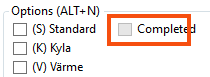 The order is marked as ready for invoicing and crediting when the Lõpetatud checkbox is selected in order reception. Ootab valmimist must be selected for this checkbox to be selectable. |