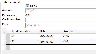 If the external credit is imported, the crediting date specified by your partner is displayed. If external credits are added manually, Opter suggests the current date, but you can enter a different date if desired. |