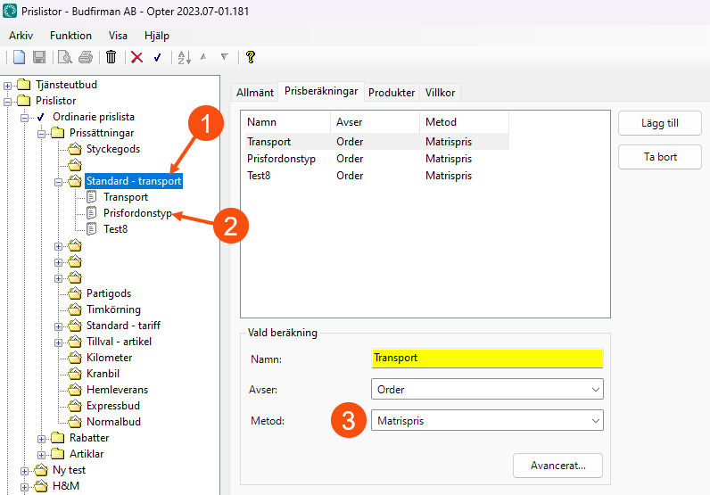 The price methods (3) have been removed. All the price methods are handled as matrix prices. If other pricing methods are used, they will be converted to matrix prices when you update to a version of Opter with the new price list editor.