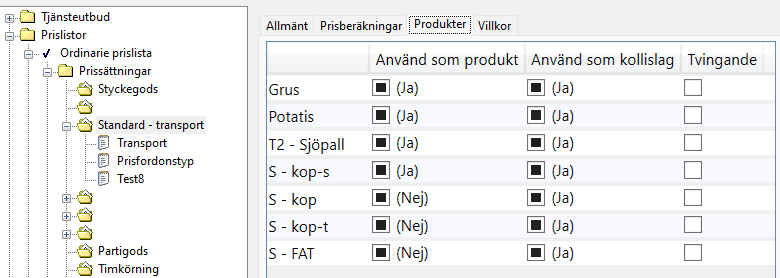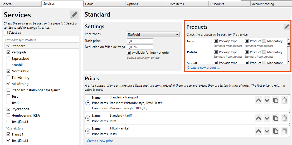 The price collections previously determined which products and types of package could be selected on the order. Now this is determined by the service. However, it is still possible to restrict which products give a price on the order, even if all the products are available: