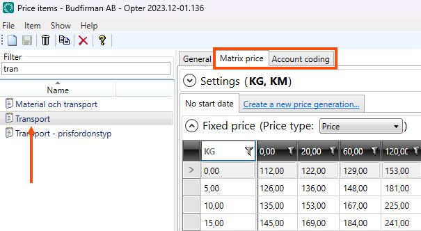 It is no longer possible to select a price type. All prices are now matrix prices.