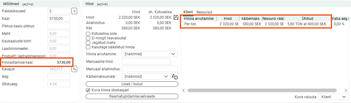 This order has a pricing weight of 5.73 tonnes and has therefore been given a unit price of 5.8 × 400 = SEK 2 320 after rounding off the weight.