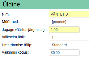 Create a price item with the price unit “Waiting time”, based on the dimension [puudub]. This dimension is for manual Price items where you enter the number on the item row. The idea is that we should indicate the waiting time in whole minutes.