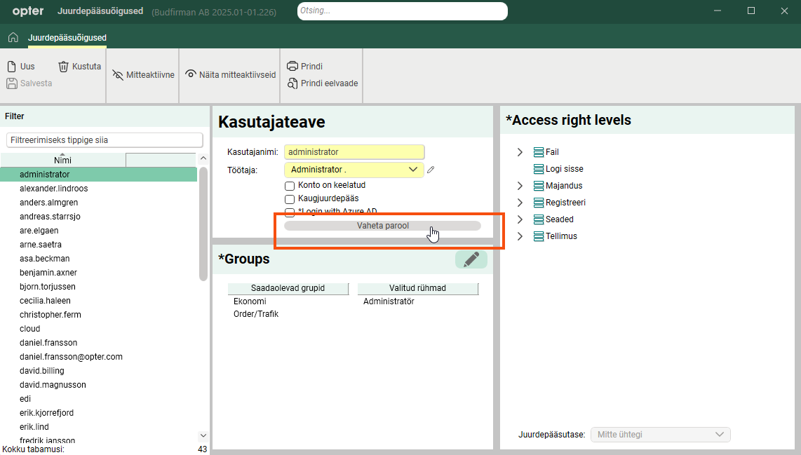 Make sure your own password is strong before you get the update. You can update your password at Seaded > Juurdepääs. If any user is unable to log in after the update, you can change the password for that user.