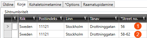 Previously, it was possible to enter the country, postcode, town and street name when creating the pick-up and delivery areas of distribution routes. It is now also possible to enter street numbers, for example "56" or a range "58-62".