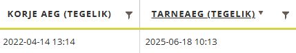 The columns korje aeg (tegelik) and Tarneaeg (tegelik) now contain both the date and time, making it easier to check delivery accuracy directly in the web portals. The columns are named Korjatud (tegelik aeg) and Tarnitud (tegelik aeg) in the internet order settings.