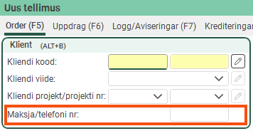 Vormi vool in the window Tellimuse sisestamise seaded.