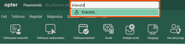 If you enter a customer code in the search bar, Opter will display the most recent orders in the dispatch where the customer code matches. If you leave the search field blank and click on Otsing, Opter will display the most recent orders in the dispatch. More details on the quick search function can be found in Order reception.