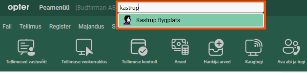 ) and type the customer's name, for example "Kastrup". Then press Enter to open the customer register for that customer.
