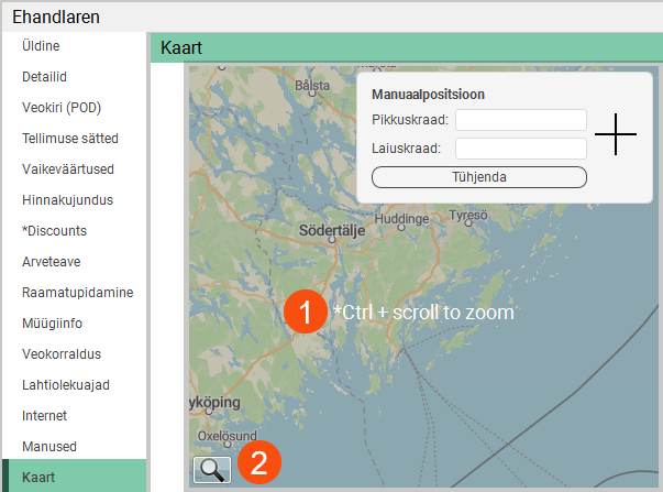 In the customer register and in window Reguleerige aadressi asukohti, you can zoom in on the map in one of the following ways: