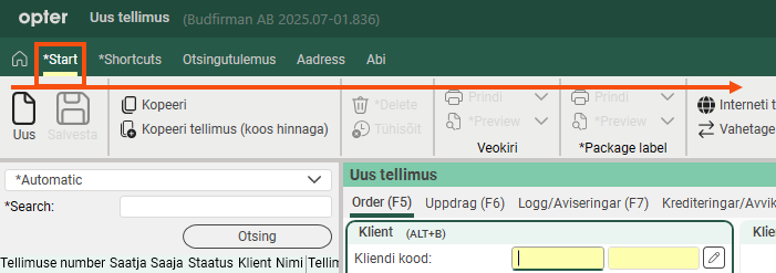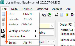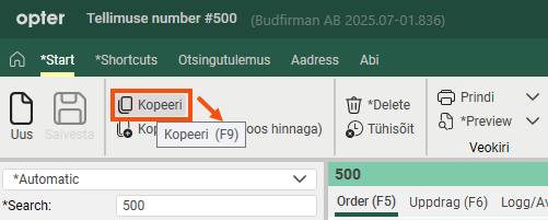 For example, if you hover over Kopeeri, you will see Copy (F9), which means you can press the F9 key to copy an order in the Order reception.