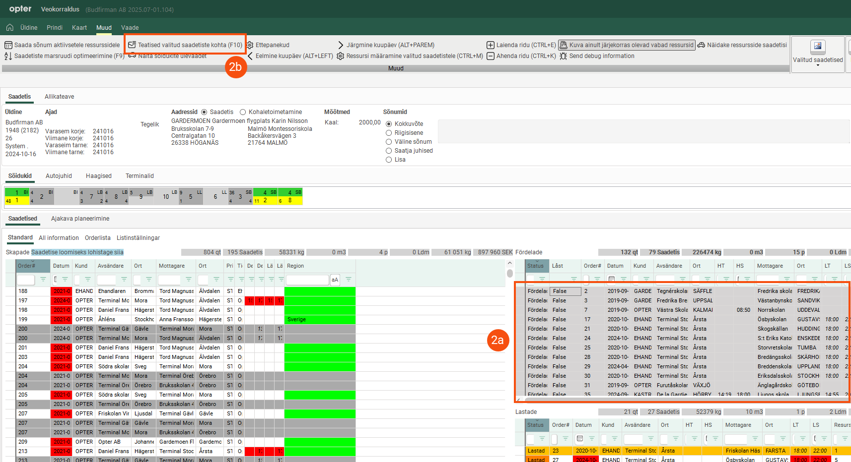 Sõidukid: Click on Register > Transpordivahendid > tab Route optimisation and tick the two checkboxes for all the resources you use in the route optimisation.