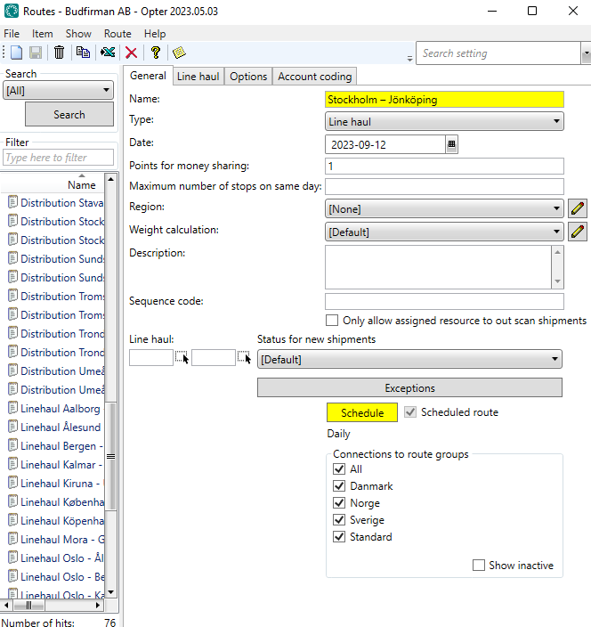 Click Tellimus > Marsruudid > Uus to create a new route. We’re calling the route “Stockholm 12*–11*”.