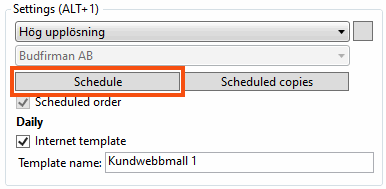 Double-click on a schedule template to open it in order reception. The template can be edited there. The way scheduled copies are generated can be changed by clicking on Ajakava under Seaded.