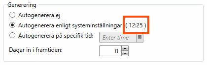 It is possible to make exceptions to the default settings for individual schedule templates by selecting Autogenerate at the following time. This can be useful if, for example, longer lead times are needed for certain orders.