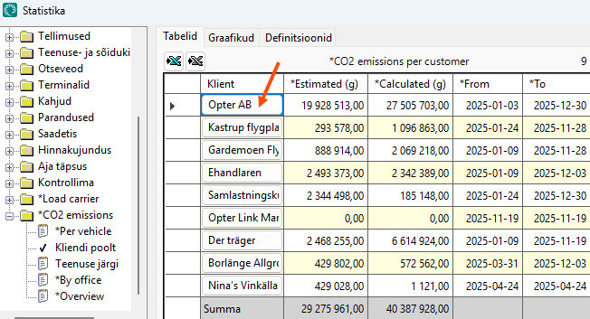 Statistical reports are based on the order date unless otherwise specified. This allows different statistical reports to be compared with each other. This also means that the statistics may differ from other items. For example, Arveldatud tellimused (under Ülevaade) may have different content than the sales ledger for the corresponding period, as the sales ledger is based on invoice dates.