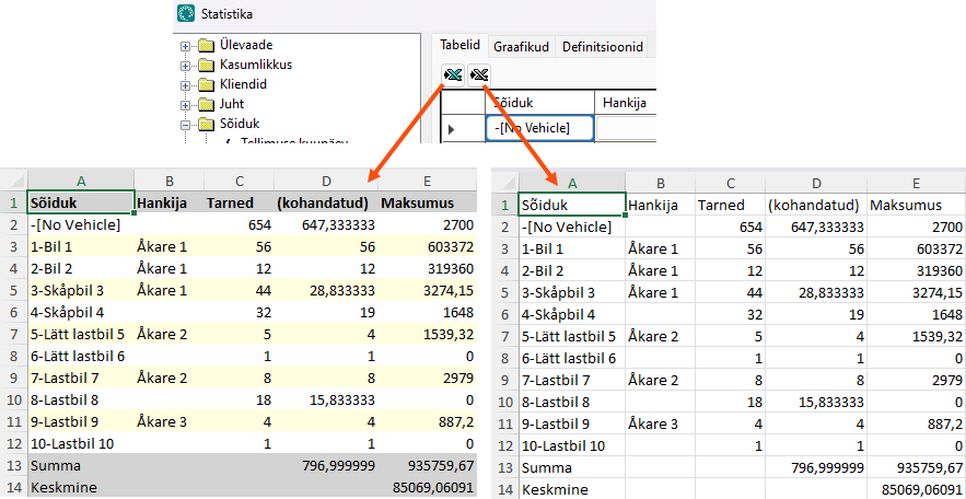 (Export to Excel without formatting). If the statistics contain numerous rows, it may take a long time to export the information with formatting, and in some cases it may not be possible to perform the export at all. In such cases, try exporting without formatting.