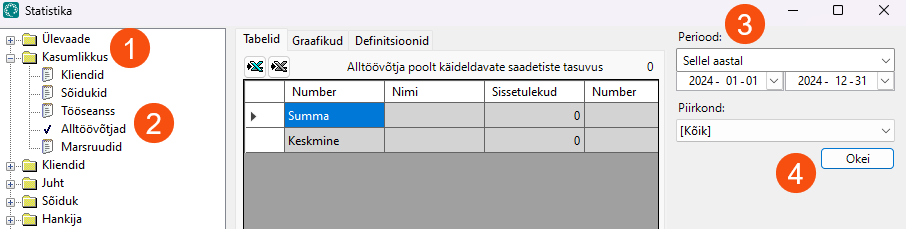 Click on the statistical report you want to create, for example Alltöövõtjad.