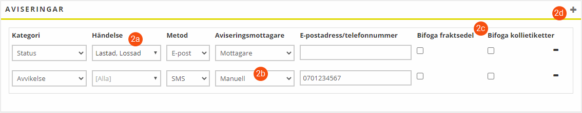Freight bills and package labels can only be attached to email notifications. If SMSis selected as the method, no files are attached.
