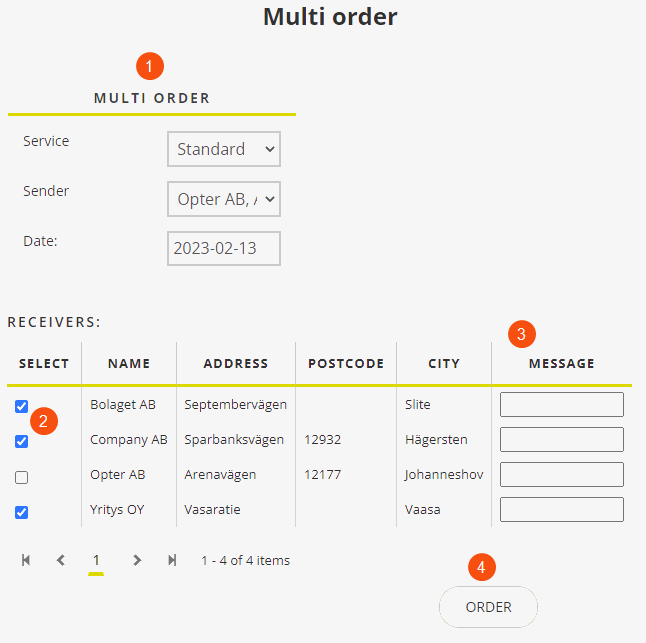 If your customers often create orders from the same sender to several different receivers, you can ask the system administrator to enable the multi-order function. When the function is enabled, orders from one sender to multiple receivers can be created more quickly and easily.