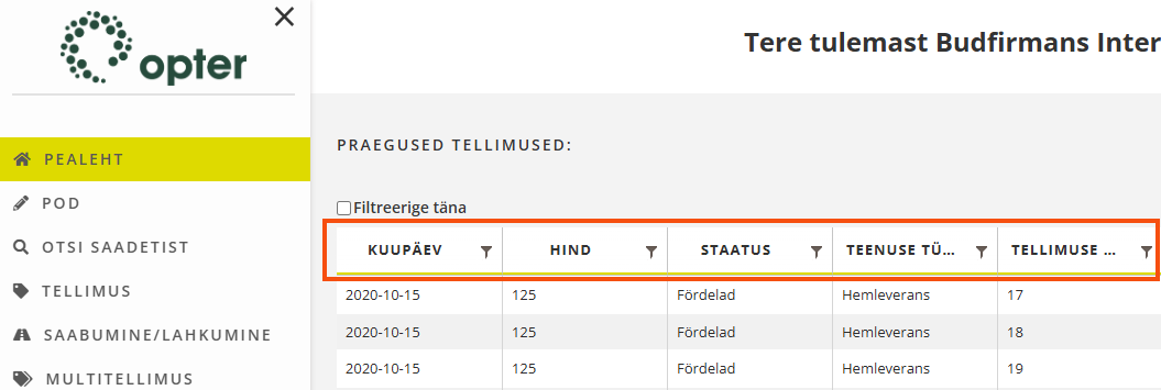 Click on Seaded > Internet > Interneti-tellimuse seaded > Tellimuse otsing tab (1) and select configuration from the list on the left (2).