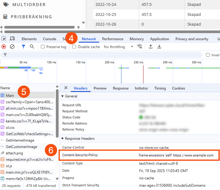 Enter the full URL of the domain where the portal will be embedded in the Domains that are permitted to embed the web portals field of the Internet tab in the office settings. You can enter multiple domains separated by spaces, for example if you have different domains for customers and hauliers.