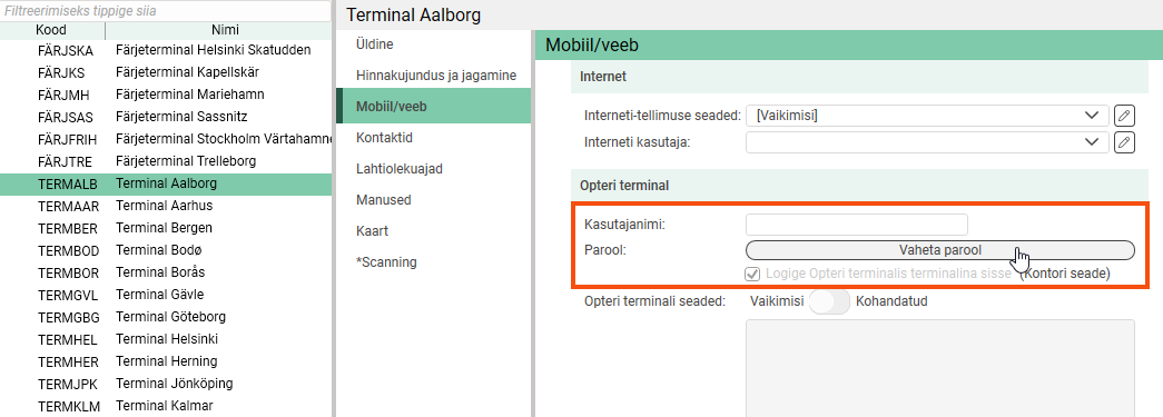 Select a terminal in the list on the left and go to the Mobiil/veeb tab.