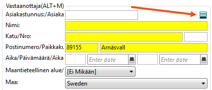 Jos järjestelmä ei löydä osoitetta, kun syötät sen Tilausten vastaanottoon, se voi johtua siitä, että osoiterekisteri on vanhentunut. Yritä tuoda osoiterekisteri uudelleen. Lisätietoa: Osoiterekisterin tuominen.