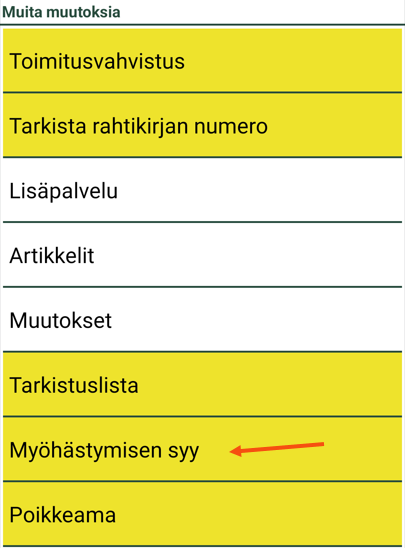 ”True”: Kuljettajien on määritettävä viivästymisen syy ja kommentti toimituksen viivästymisen yhteydessä.