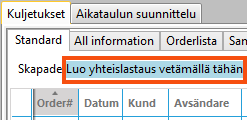 Katso pinta Luo yhteislastaus vetämällä tähän ajojärjestelyssä. Tämän jälkeen voit valita ne kuljetukset, jotka haluat sisällyttää yhteislastausiin, ja vetää ja pudottaa ne pinnalle Luo yhteislastaus vetämällä tähän.