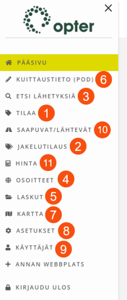 | Näytä saapuvia/lähteviä tilauksia (muu asiakas maksajana) (10) |