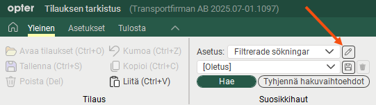 pudotusvalikon Asetus vieressä tilausten hallinnassa.