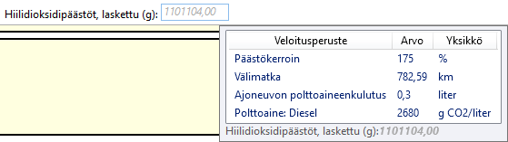 Lasketut hiilidioksidipäästöt kuljetusta varten: