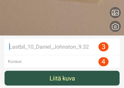 Sovellus ehdottaa automaattisesti kuvalle nimeä. Voit halutessasi painaa kenttää (3) ja antaa kuvalle nimen itse.