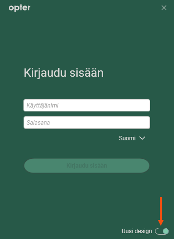 Kun kirjaudut sisään, voit valita uuden tai perinteisen ulkoasun napsauttamalla oikeassa alakulmassa olevaa liukusäädintä. Opter tallentaa viimeisimmän valintasi.