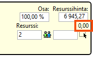 Valitse resurssien hinnoittelu. Voit myös lisätä uusia tai muuttaa olemassa olevia resurssien hinnoittelua napsauttamalla [Ei Mikään] tarkoittaa, että kustannuksia ei synny, vaikka manuaaliset kustannukset olisi syötetty.