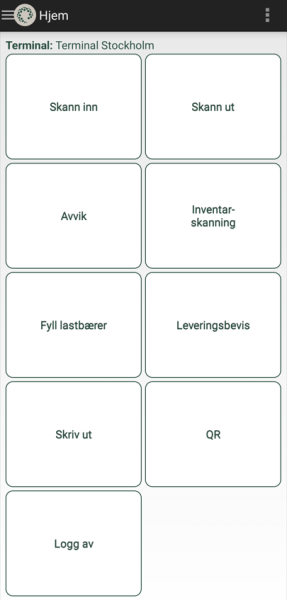 Bestemmer om alternativet Skann inn skal vises på hovedmenyen. Brukes til skanning av gods som kommer til terminalen.