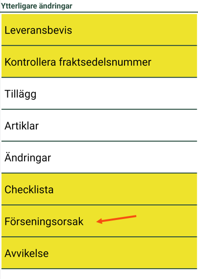 I Opter Driver (classic) for Android vises alternativet Forsinkelsegrunn når driveren endrer status til Losset. Statusendringen kan ikke lagres før årsaken og kommentaren er fylt ut.