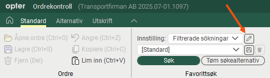 ved siden av listeruten Innstilling i ordrekontrollen.