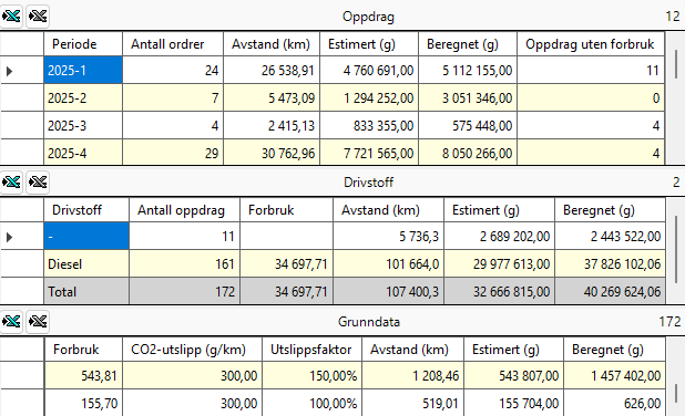 (For Opter versjon 2025.06.00 og tidligere beregnes oppdragets CO2-utslipp basert på Opter/PTV-avstanden, selv om avstanden er angitt manuelt på oppdraget og oppdraget bare har ett oppdrag).