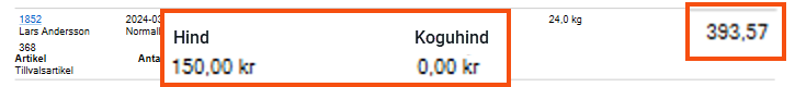 En ordre med følgende prislinjer vil vises på ordrelinjen på fakturaen som vist nedenfor.