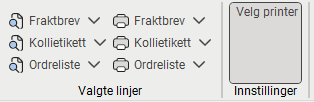 Klikk på knappen for å aktivere den hvis du vil ha muligheten til å velge skriver før du skriver ut. Hvis den ikke er aktivert, skrives fraktbrev, pakkelapper og ordrelister ut direkte på standardskriveren din.