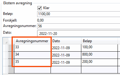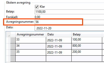 | Ekstern avregning - nummer |