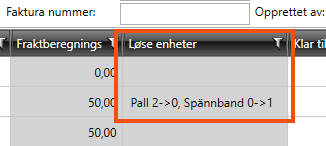 Viser lastbærer-ID. Hvis ordren har kolli i en lastbærer, vises lastbærerens ID i kolonnen. Hvis ordren har kolli i mer enn én lastbærer, vises lastbærernes ID med komma mellom. Mer informasjon om lastbærere finnes i Lastbærer. |
